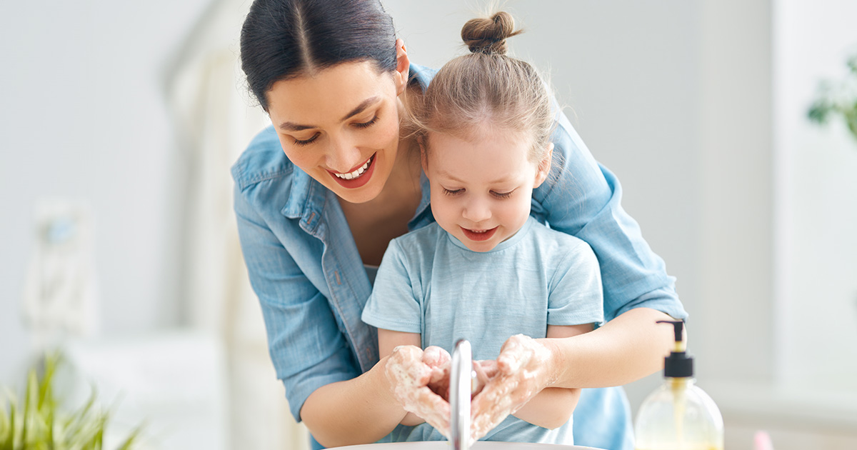 Washing your child’s hands regularly is the easiest way to keep germs away. Make handwashing fun by singing a silly song, using colorful or scented soaps, or turning it into a game. Play Simon Says to call out various parts of your child’s hands as they scrub.